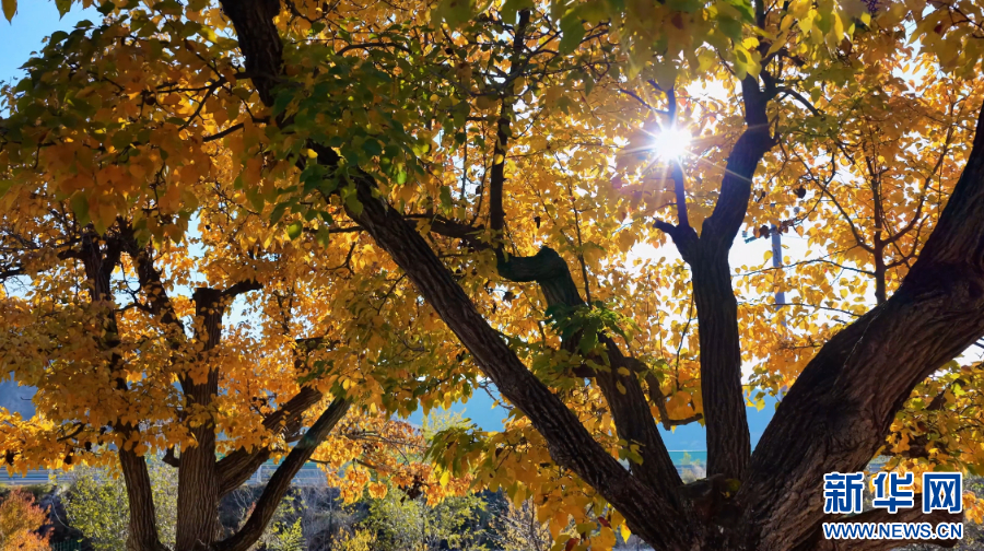 深秋时节,宁夏海原县关桥乡的百年梨园被秋意浸染,岸边的林木裹着焦糖色的暖意,错落的屋舍嵌在红黄相间的林子里,这方西北乡野的秋,如诗如画。新华网发 田虎摄